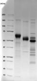 1D SDS-PAGE of Symansis' hcx protein before and after treatment with glycosidases to remove oligosaccharides. A drop in the observed MW after treatment indicates the presence of glycosylation.