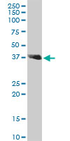 Lane 1: SPARC transfected lysate(34.6 KDa).