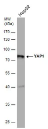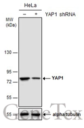 Whole cell extract (30 μg) was separated by 10% SDS-PAGE, and the membrane was blotted with YAP1 antibody [GT256] (GTX633541) diluted at 1:1000.