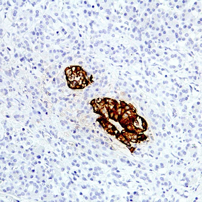 Alta especificidad y reproducibilidad: Los anticuerpos anti-insulina con certificación CE/IVD se desarrollan y validan para garantizar un reconocimiento sólido de los péptidos de insulina humana en tejidos fijados en formalina, produciendo una tinción reproducible con una reactividad cruzada mínima. Estos anticuerpos localizan de manera confiable la insulina en las células β y en las células tumorales productoras de insulina, apoyando una interpretación histopatológica precisa.